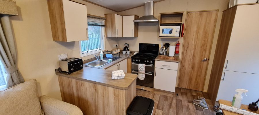 A fully fitted and equipped kitchen for cooking features a 4 burner hob, grille, oven, microwave, toaster, kettle and utensils. If you prefer a day off from cooking, why not try the excellent onsite café New Cod on The Block. Further afield there are restaurants and pubs, the pier, so many amusement arcades and the Skegness Aquarium too. If staying on the site on rainy days there are three televisions (one in each bedroom) and a DVD player, plus family board games. WiFi is now available too. If the kids get bored indoors, there is an onsite arcade The Gold Coast where tokens can be won and swapped for prizes when accompanied by an adult. The onsite Laundry is a short walk away, washer tokens available from Reception*. Don’t forget it’s just a short distance to the sea front and the miles and miles of sandy beach, coastal paths and lots to explore!
